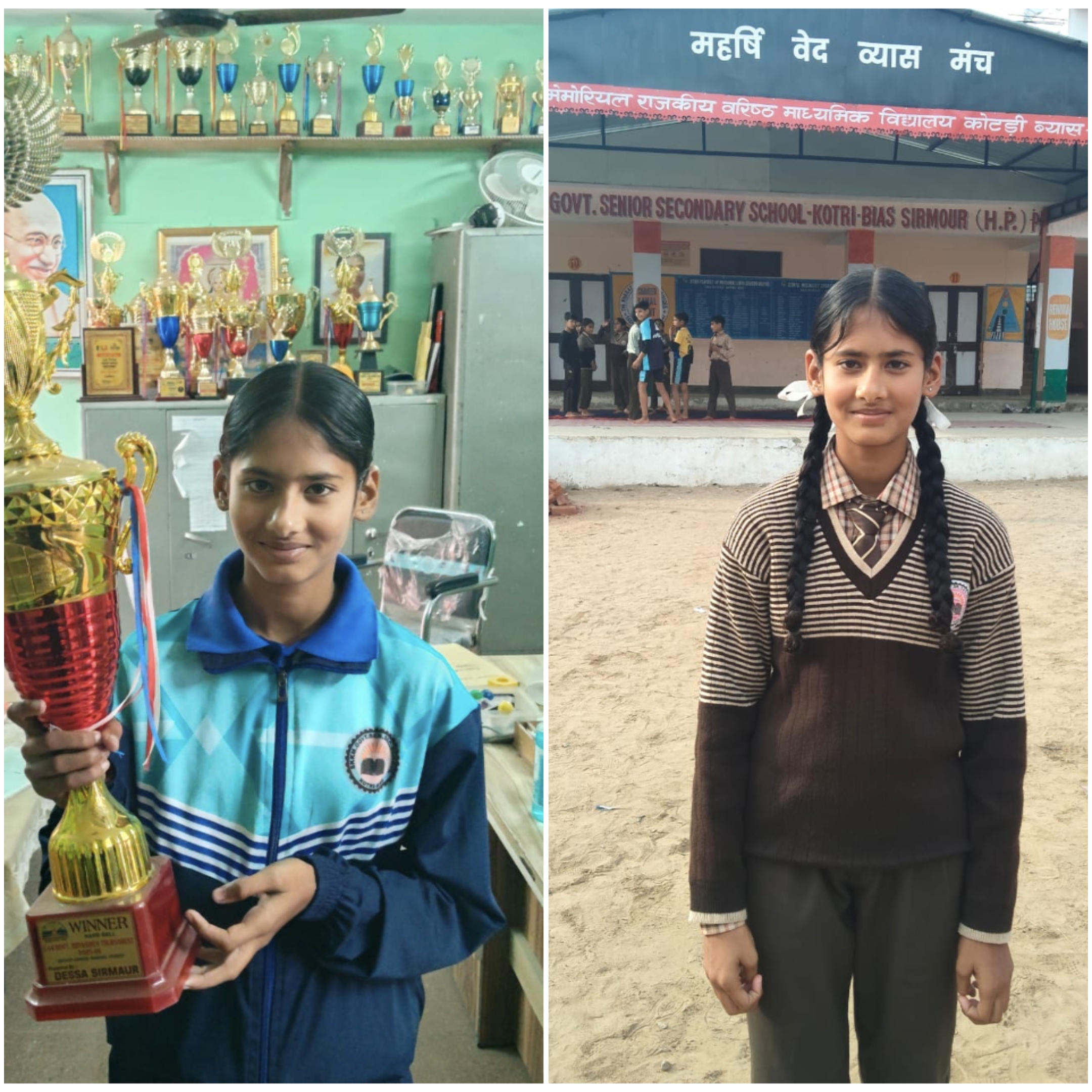 कोटडी व्यास, सिरमौर (हिमाचल प्रदेश) – सिरमौर जिला के विकास खंड पोंटा की पंचायत कोटडी व्यास के शहीद कमल कांत मेमोरियल विद्यालय कोटडी व्यास की मनीषा को 69 th स्कूल गेम फेडरेशन आफ इंडिया अंडर-14 गर्ल्स गेम्स में हिमाचल प्रदेश का हैंडबॉल में प्रतिनिधित्व करने का अवसर प्राप्त किया है।