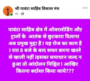 #पांवटा_साहिब #विकास_मंच #ओवरलोडिंग_समस्या #जनआवाज़