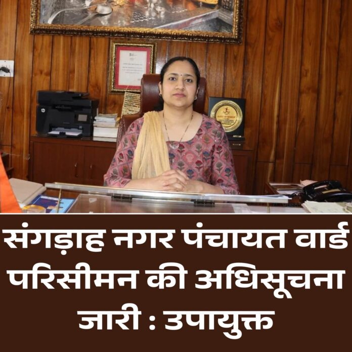 उपायुक्त ने बताया कि हिमाचल प्रदेश नगर पालिका निर्वाचन(वार्डांे का पुनर्गठन एवं आरक्षण) नियम 2015 के नियम 9(1) में प्रदत्त शक्तियों का प्रयोग करते हुए वर्ष 2026 में होने वाले शहरी निकायों के निर्वाचन के लिए नगर पंचायत सगडांह के समस्त सात वार्डों के परिसीमन हेतू अतिंम प्राकाशन की अधिसूचना जारी कर दी गई हैं।