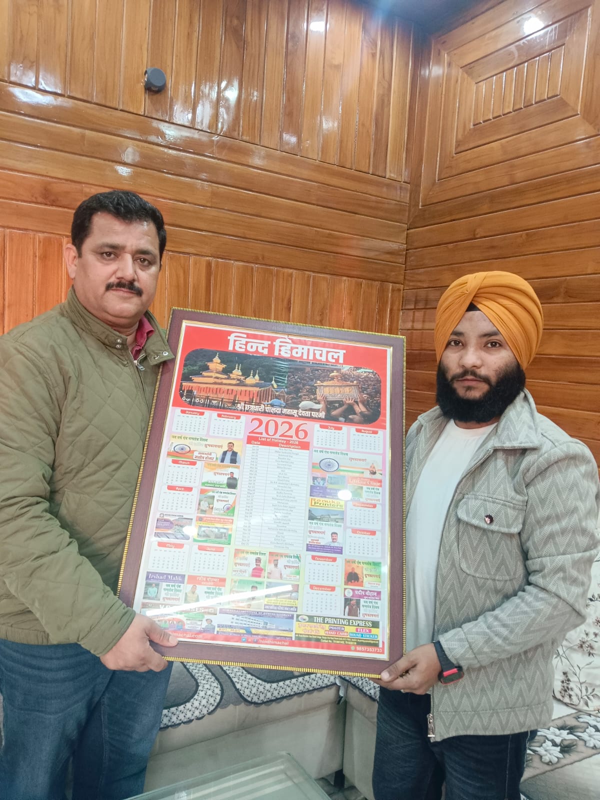समाजसेवी और गिरीपार पुत्र नाम से प्रचलित मनीष तोमर ने अपने पांवटा साहिब निवास पर “हिंद हिमाचल मीडिया” के वार्षिक कैलेंडर 2026 की स्क्रीनिंग की गणतंत्र दिवस पर कैलेंडर का विमोचन करते हुए मनीष तोमर ने कहा हिन्द हिमाचल के मैनेजिंग एडिटर मनजीत सिंह और उनकी पूरी टीम को बधाई दी ।